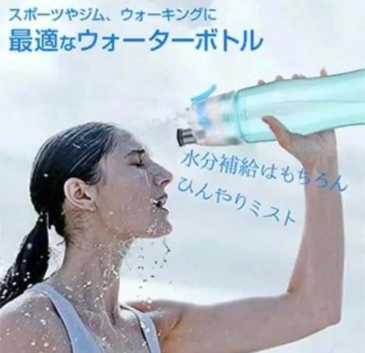 このドリンクボトルは740mlの容量があり、充実のスプレー機能を搭載しています。運動前や後にはもちろん、熱い日差しの中での使用も非常に便利です。ミストを吹きかけることで、体温を下げ、爽快感を体験できます。持ち運びの際にも便利なデザインで、外出先でも効果的に水分補給できます。